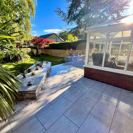 A rear garden transformation in October 2025, turning a tired and rotten timber deck into a sleek, contemporary outdoor space. Located in the peaceful surroundings of S70, the five-week project was driven by the client’s desire for a stylish yet functional patio that would elevate their outdoor living experience.